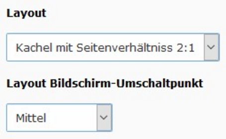 Das Auswahlfeld "Layout" wurde mit Kachel-Layouts ergänzt und zur besseren Darstellung der Layouts auf den verschiedenen Bildschirmgrössen wurde das Auswahlfeld "Layout Bildschirm-Umschaltpunkt" hizugefügt.
